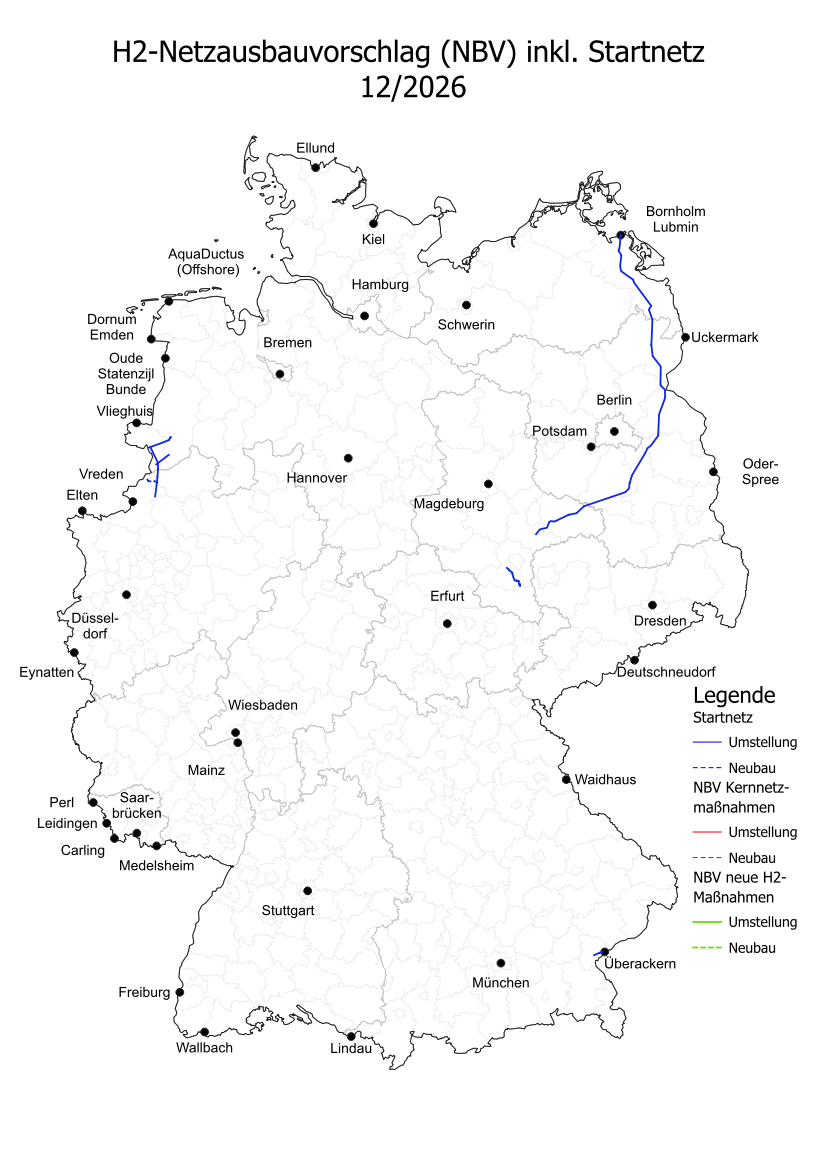 Karte - Netzausbauvorschlag Wasserstoffnetz 2027 / PNG / 338 KB